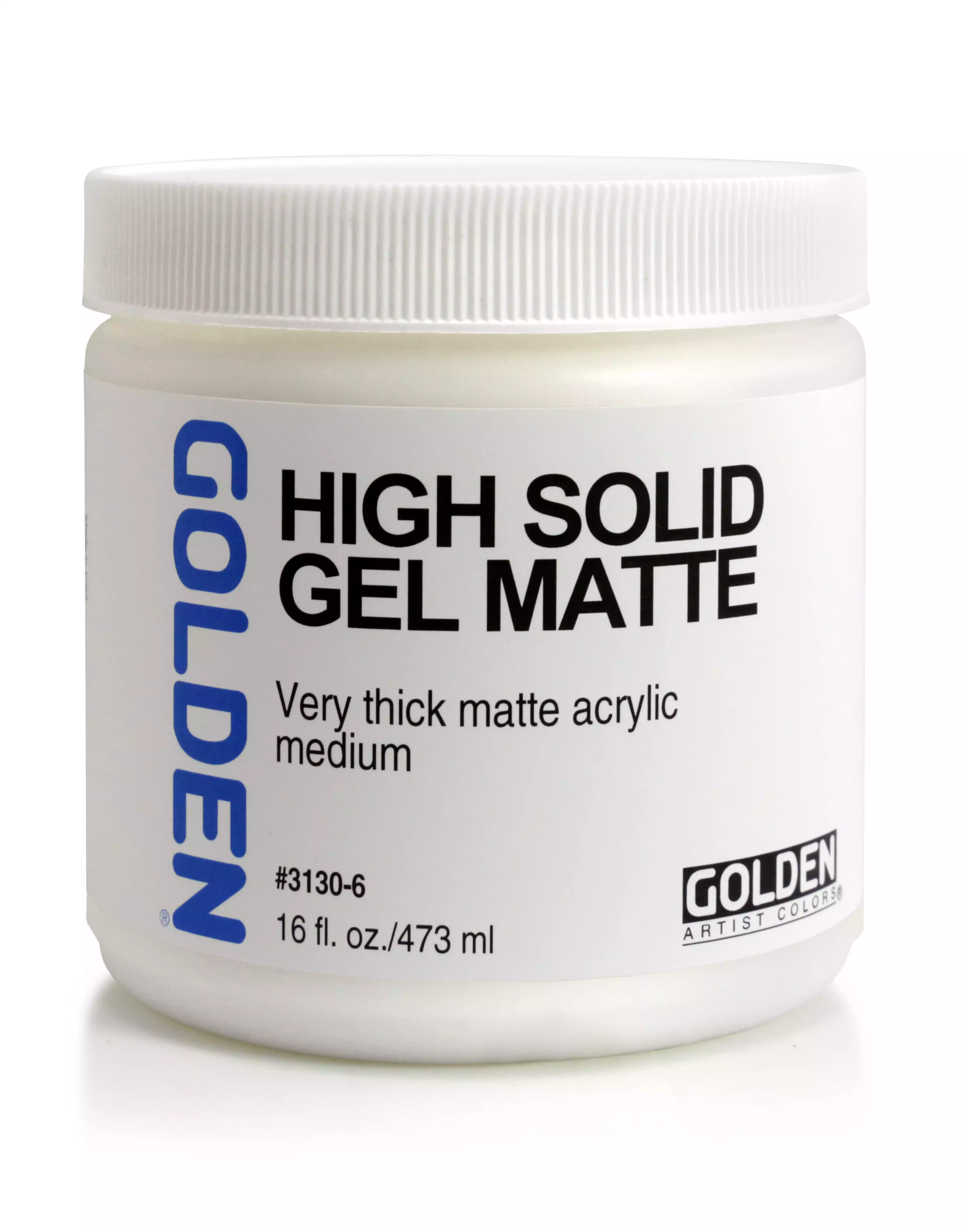High Solid Gels har samme konsistens som Extra Heavy Gels. Fordi de indeholder forholdsvis mindre vand og mere acryl tørstof, kryber de mindre end andre gels. High Solid Gels er gode at blande med farver og kan bevare spor af penselstrøg, når de tørrer. For kunstnere der ønsker en acrylfarve der reagerer som en oliefarve er denne gel den helt rigtige. High Solid (Gloss) fremstår glasklar når den tørrer. High Solid (Matte) får en tåget, voksagtig finish