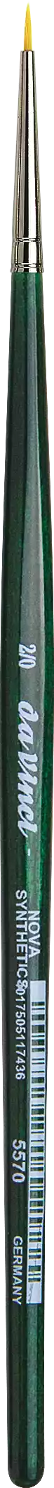 NOVA akvarelpensel Fineste gyldne syntetiske fibre Såkaldt sølv-indfatning Kort, grønt transparent lakeret sekskantet skaft For mere information om diverse mål mm - URL(http://www.vindelev-ramme.dk/_dk/Content/Data/Penselmaal/5570.pdf|MÅLSKEMA|new)END