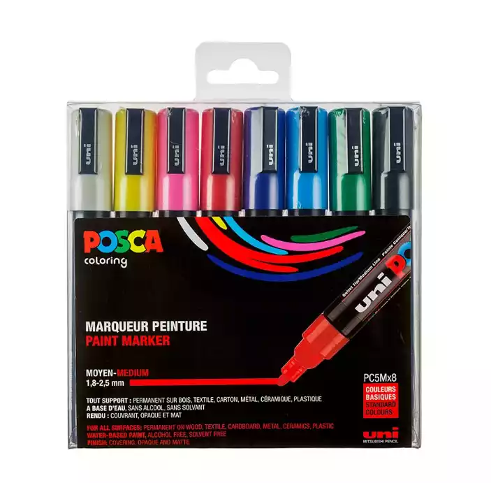 Uni posca sæt med 8 stk. 5m.