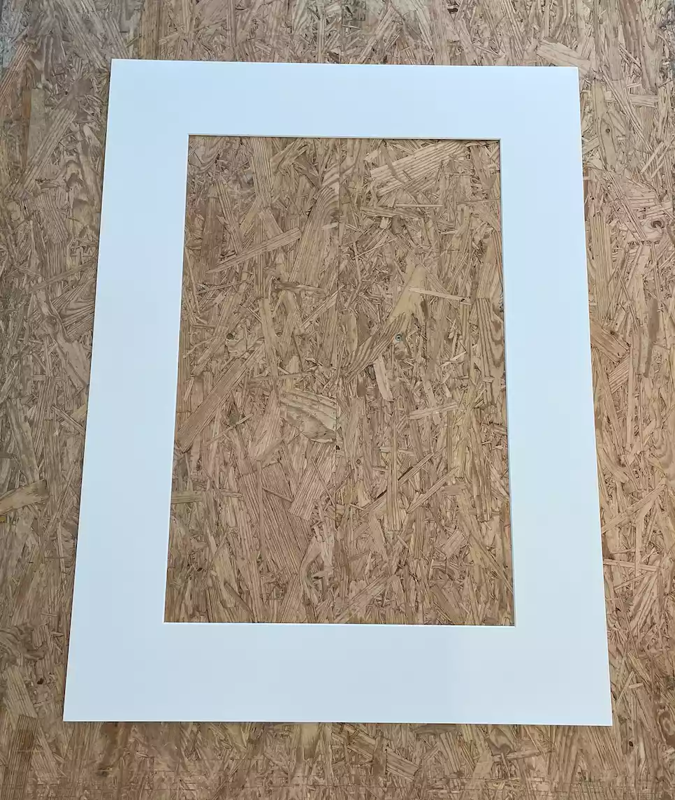 Færdiglavet passepartout i creme - 1,2 mm. udv. mål 60 x 80 cm - indv. mål 40 x 60 cm hul.