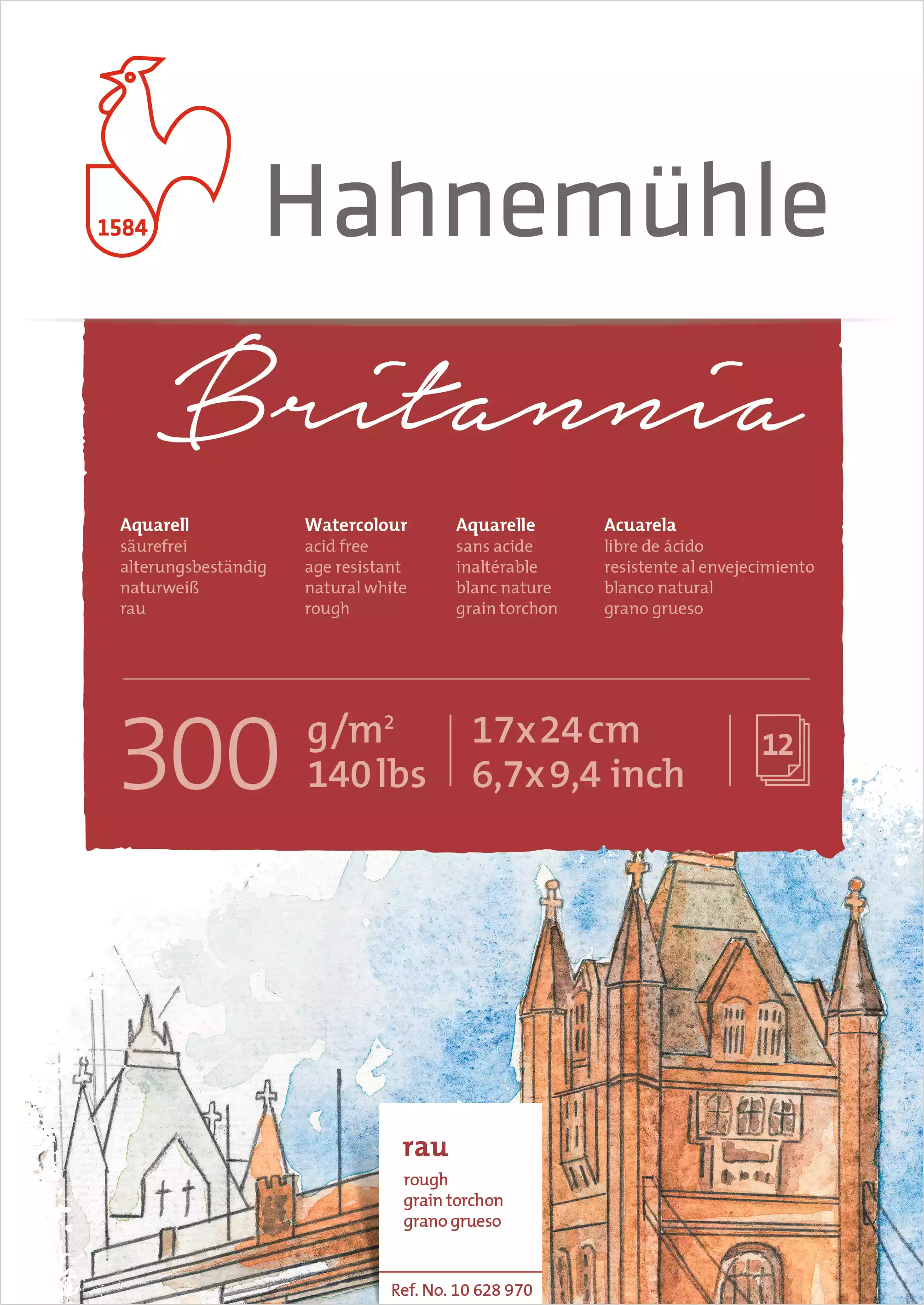 Britannia Akvarelblok Ru 17x24 cm - 300 gram - 12 ark