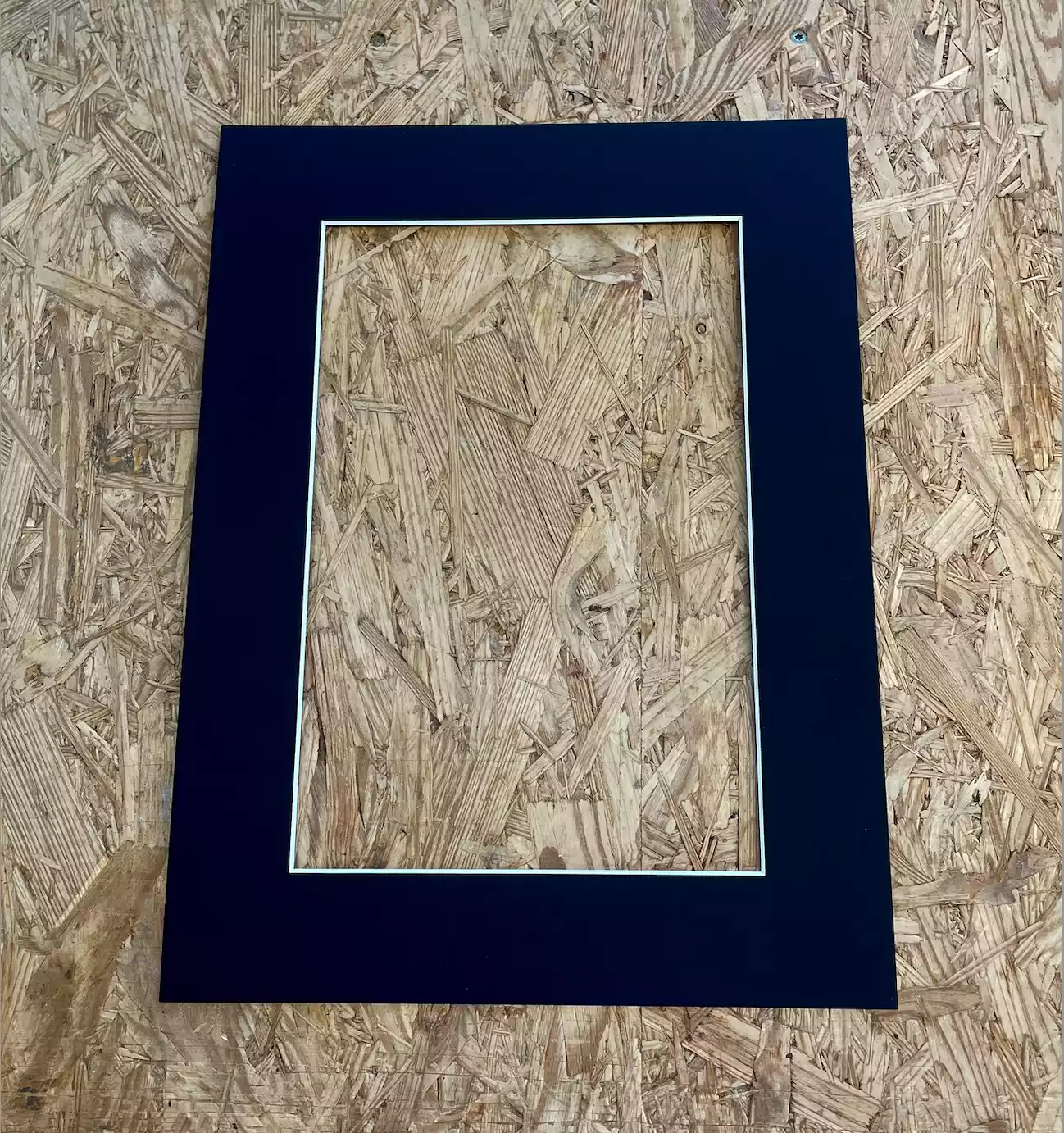 Færdiglavet passepartout i sort - 1,2 mm. udv. mål 30 x 40 cm - indv. mål 20 x 30 cm hul.