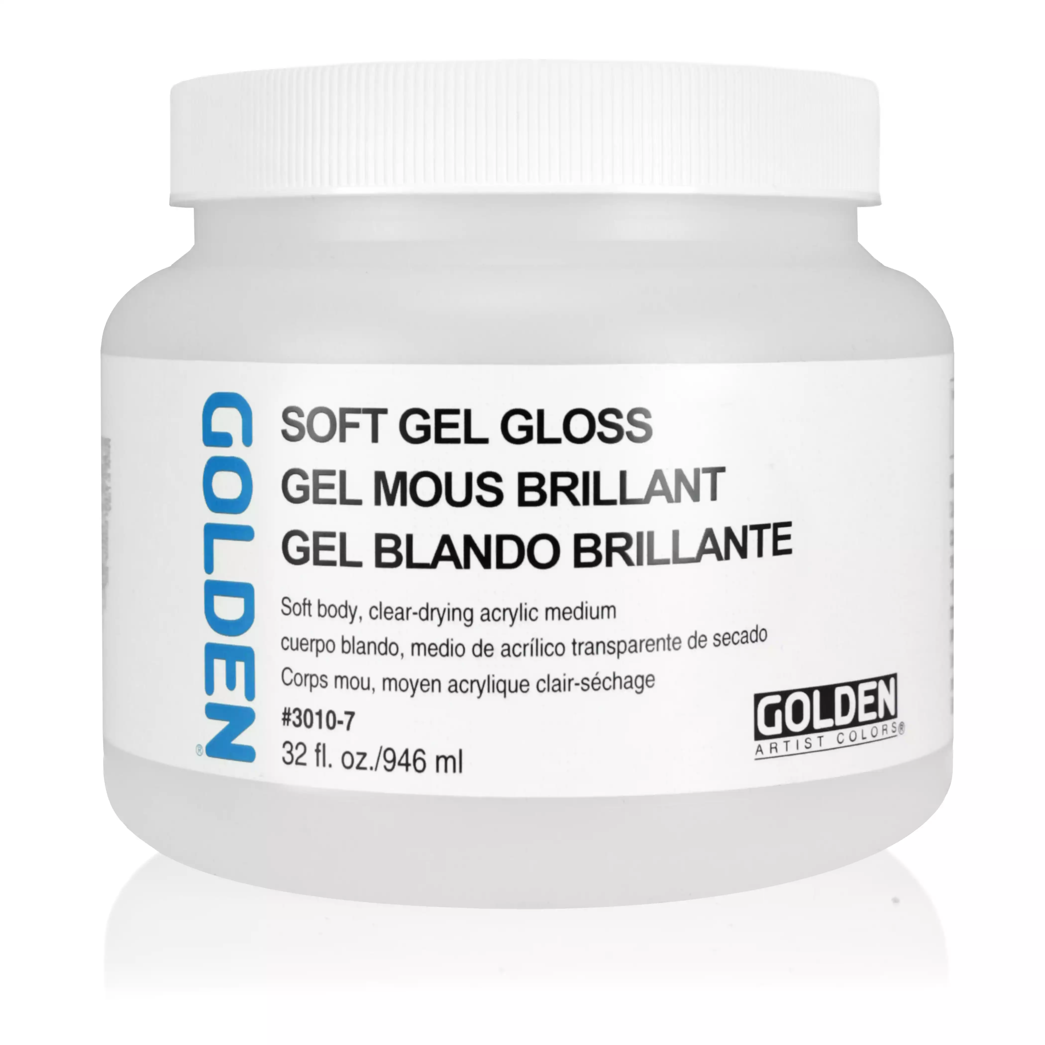 SOFT Gels er mere tyndtflydende end GOLDEN Heavy Body acrylfarver og kan hældes direkte ud af beholderen. Når den blandes med blot en lille mængde farve, fremstår den strålende blank. Soft gels kan bruges som basis til at fortynde med og også som lim til collager. SOFT Gel Gloss kan fortyndes med vand og pensles på som et uopløseligt, isolerende og gennemsigtigt lag, inden en opløselig slutfernis påføres.