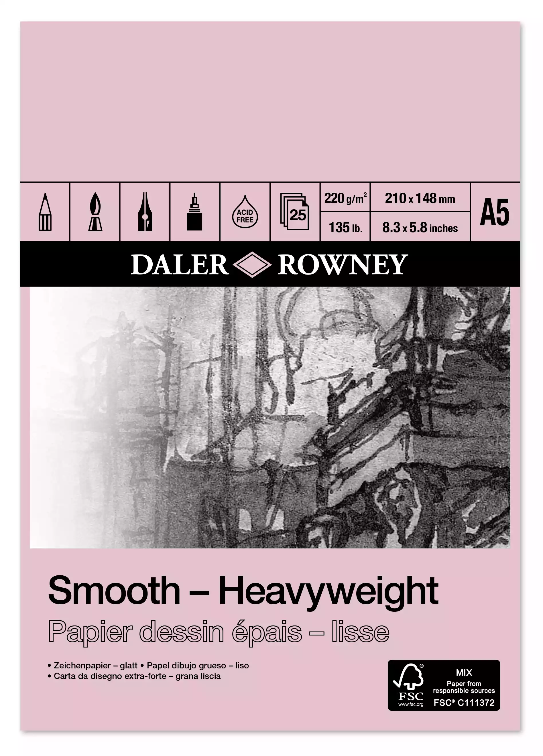 Smooth-Heavyweigth skitseblok A5, 220gram - 25ark