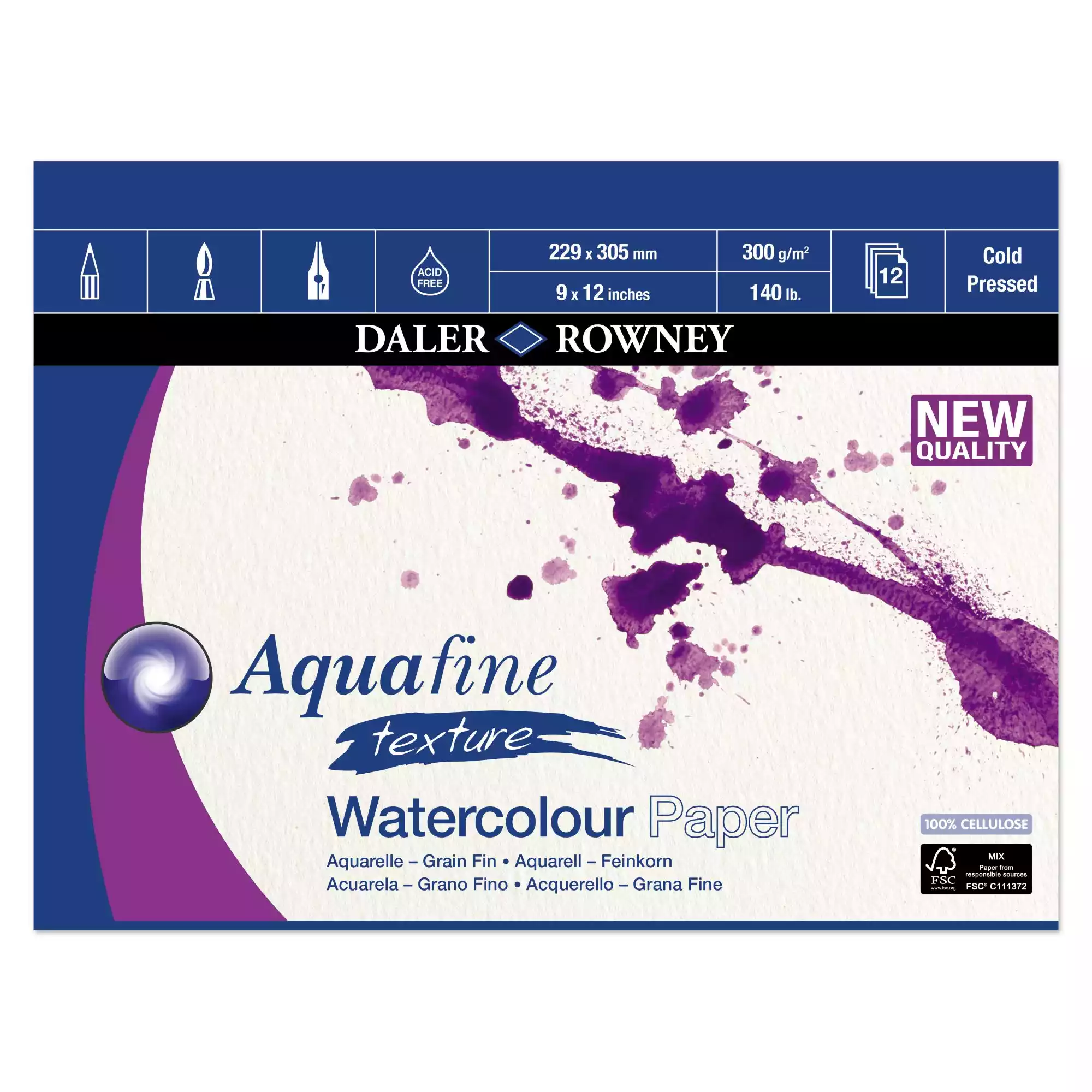 Aquafine Akvarelblok 229x305 mm. 12 ark - 300 g.