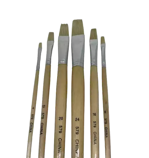 Flad svinebørstepensel til acryl og olie fra Kina. Sættet består af nr. 04, 08, 12, 16, 20 og 24