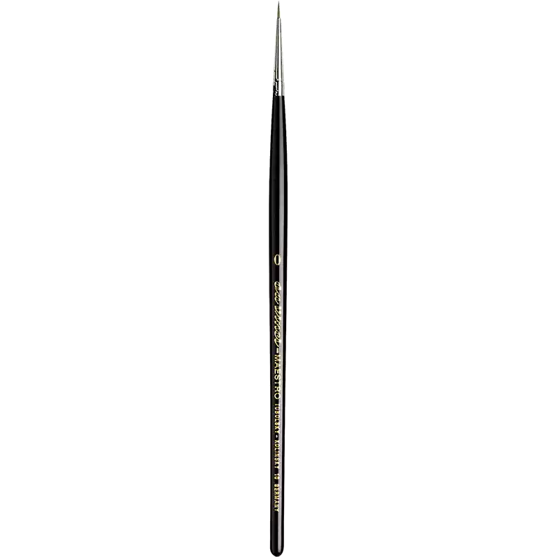 MAESTRO akvarelpensel, rund Sibirsk Kolinsky rødmårs hår fra udvalgte hanners vinter haler. Såkaldt sølv-indfatning Kort, sortpoleret skaft Fra størrelse 12 og opefter er penslerne pakket hver for sig i en speciel gaveæske. For mere information om diverse mål mm - URL(http://www.vindelev-ramme.dk/_dk/Content/Data/Penselmaal/10.pdf|MÅLSKEMA|new)END