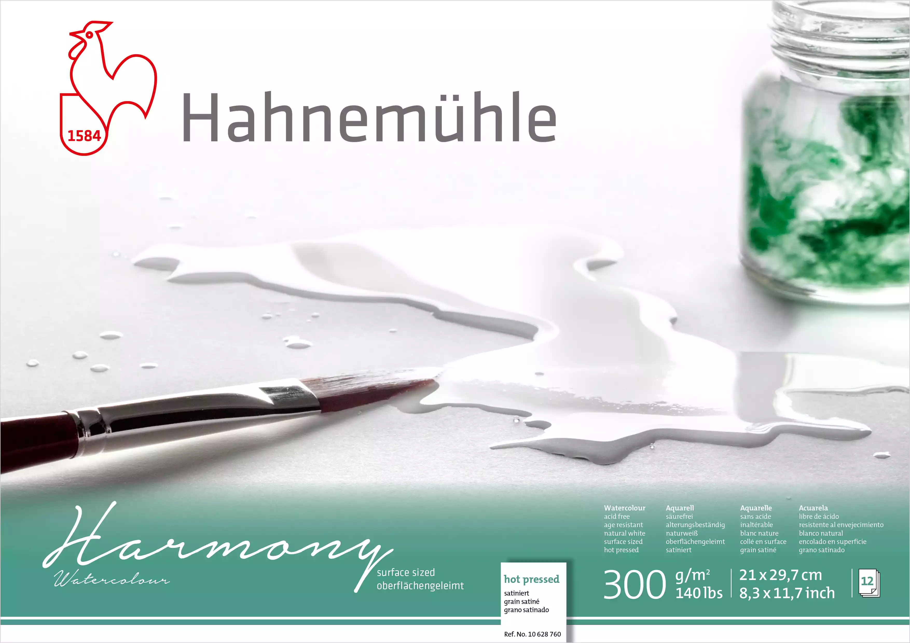 Harmony akvaral blok A4 glat, 300 gram - 12 ark, limet i 4 sider