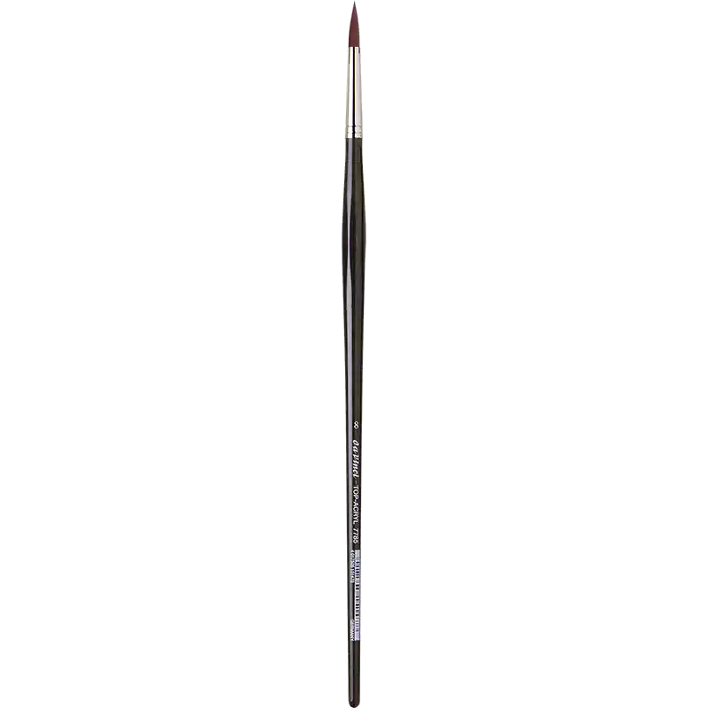 TOP-ACRYL, rund rød-brune syntetiske mellemlange børstehår Såkaldt sølv indfatning Langt, antracite transparent lakeret sekskantet skaft Til detaljer og præcisionsarbejder For mere information om diverse mål mm - URL(http://www.vindelev-ramme.dk/_dk/Content/Data/Penselmaal/7785.pdf |MÅLSKEMA|new)END