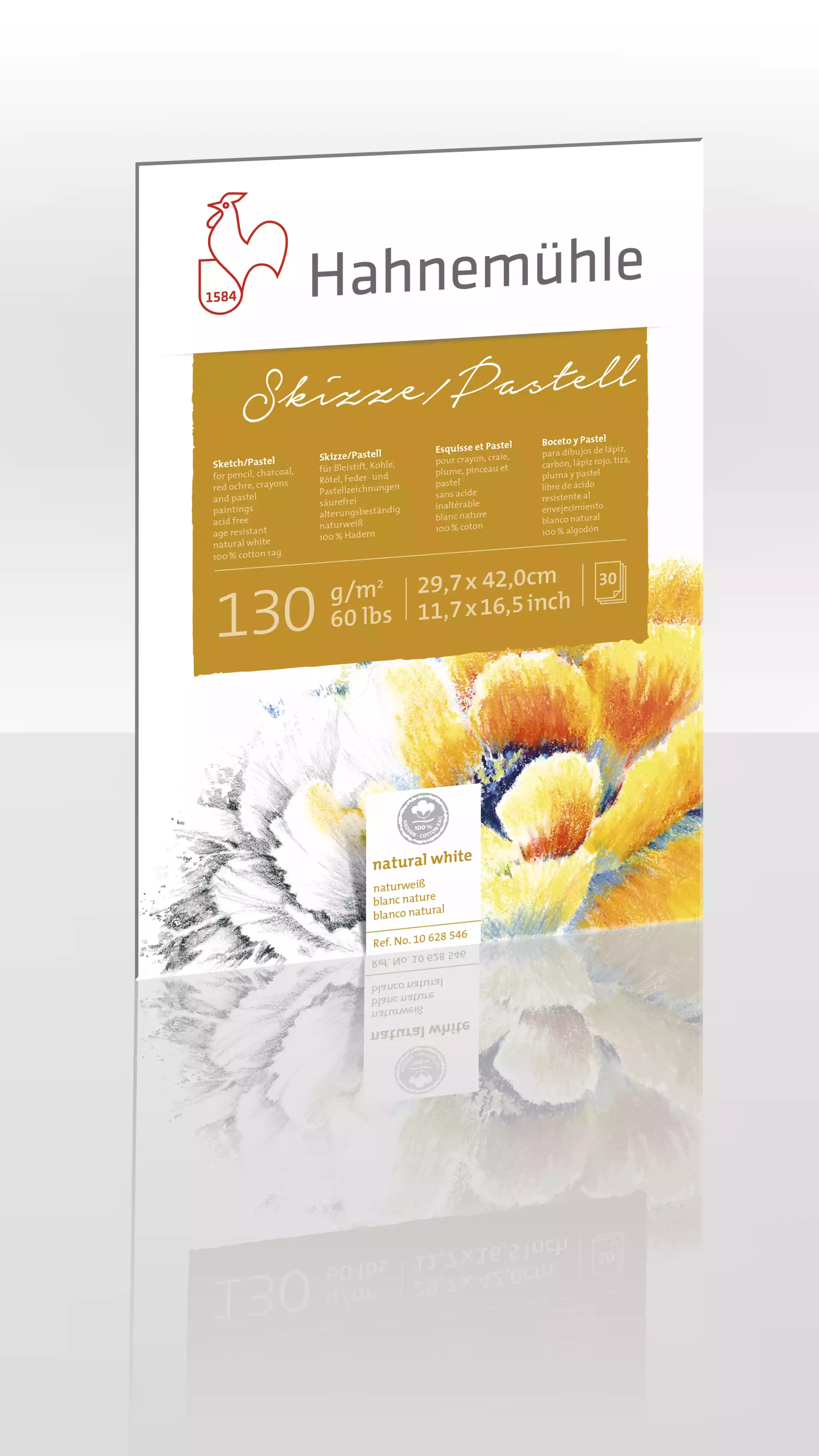 Skitse pastel blok 29,7x42 cm 130 gram, 30 ark natural white