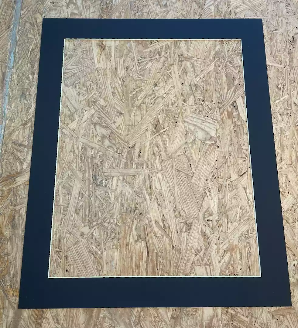 Færdiglavet passepartout i sort - 1,2 mm. udv. mål 13 x 18 cm - indv. mål 9 x 13 cm hul.