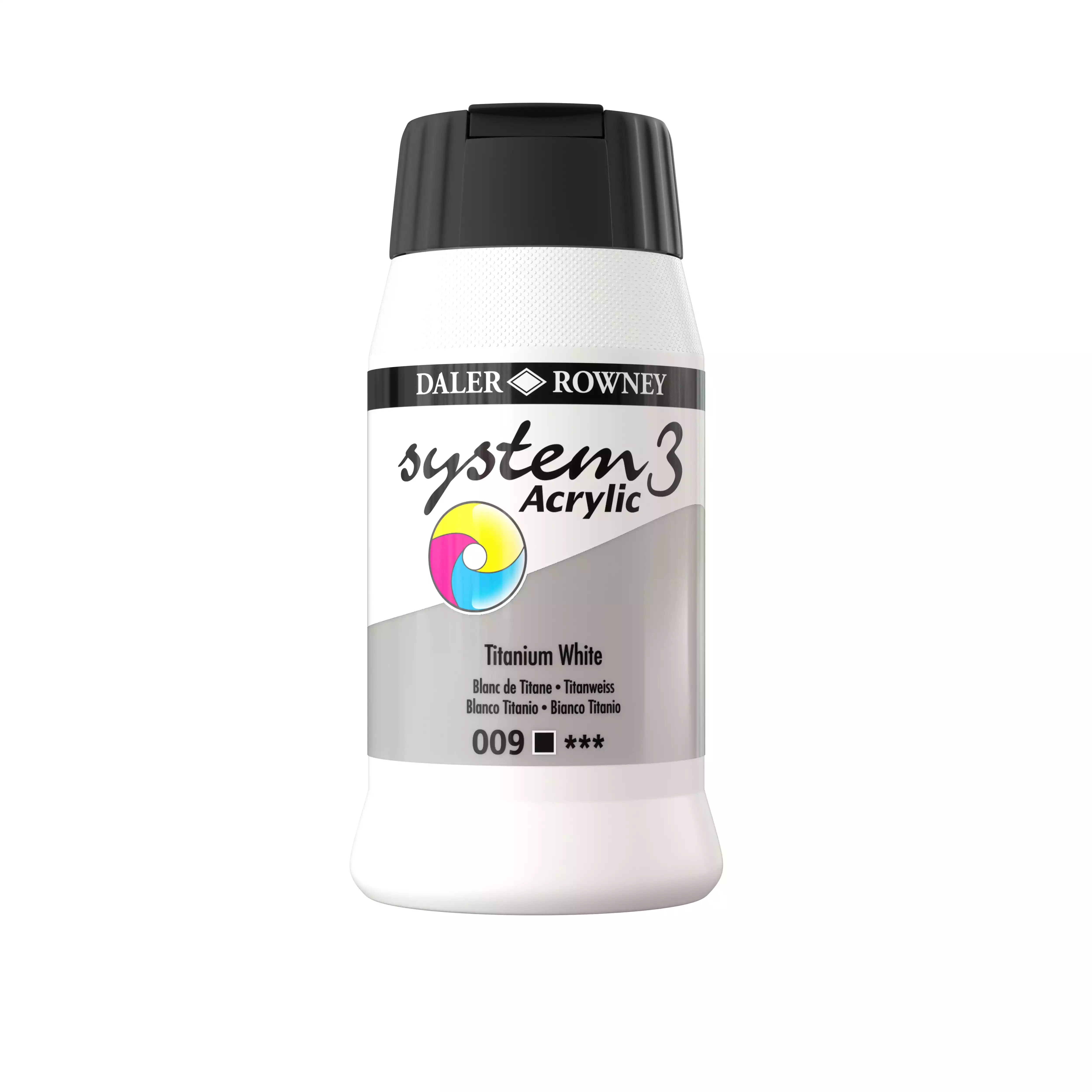 Varenr: A009System 3 er en alsidig, vandbaseret acrylmaling af høj studiekvalitet. Farven giver mulighed for en enestående maleoplevelse - til en rimelig pris. Med System 3 farverne er der taget hensyn til lysægthed, bestandighed og fleksibilitet. System 3 kan fortyndes med vand eller farven kan bruges direkte fra emballagen som en tykkere farve med forbedret tørreevne. Uanset i hvilken konsistens farven anvendes, tørrer den hurtigt og danner en uopløselig film. Tørretiden opmundrer brugeren til at arbejde hurtigt, lægge en ny farve ovenpå en anden eller ved siden af, uden at det forstyrrer arbejdet. De mange medier forøger ligeledes de kreative muligheder med System 3, idet de gør farven fremragende til vandbaseret serigrafi på både papir og stof samt til forskellige overfladebehandlinger og strukturer, både til maleri og hobbybrug.