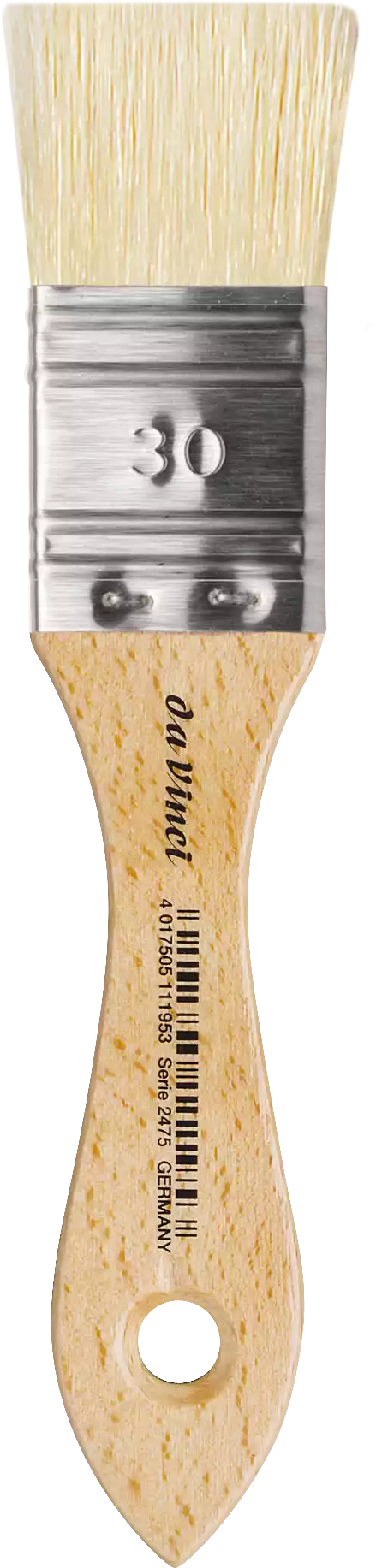 Bred pensel med lyse kina-svinebørster Rustfri stålindfatning. Kort, ikke lakeret håndtag. Til fernisering, lasering og grundering For mere information om diverse mål mm - URL(http://www.vindelev-ramme.dk/_dk/Content/Data/Penselmaal/2470.pdf|MÅLSKEMA|new)END