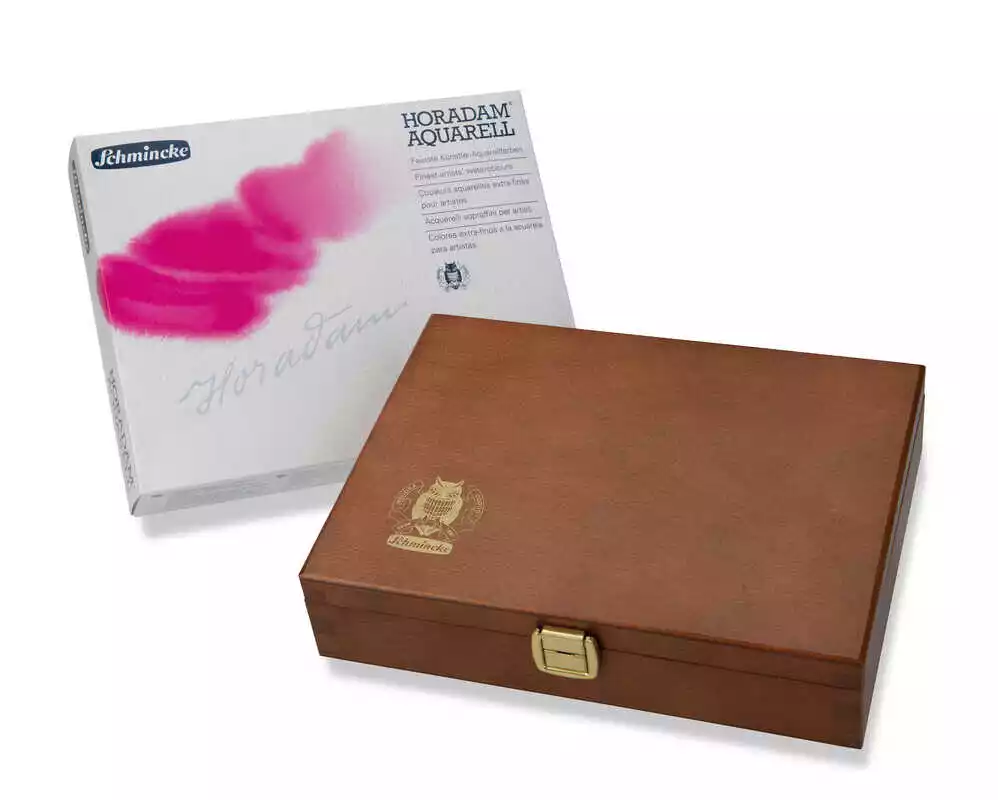 HORADAM akvarelfarver sætter kunstneren i stand til at yde sit bedste, selv når der benyttes de nye typer af blødt akvarelpapir. Ved fremstilling af HORADAM akvarelfarver bruges kun den bedste kvalitet naturgummi, vandopløselig harpiks og de fineste pigmenter. Akvarelfarverne hældes på farveforme som en flydende pasta og hver form efterfyldes tre gange efter lange, kontrollerede tørringsperioder. Der er sørget for, at noget af fugtigheden bliver tilbage og denne fugtighed forbedrer farvens optageevne.