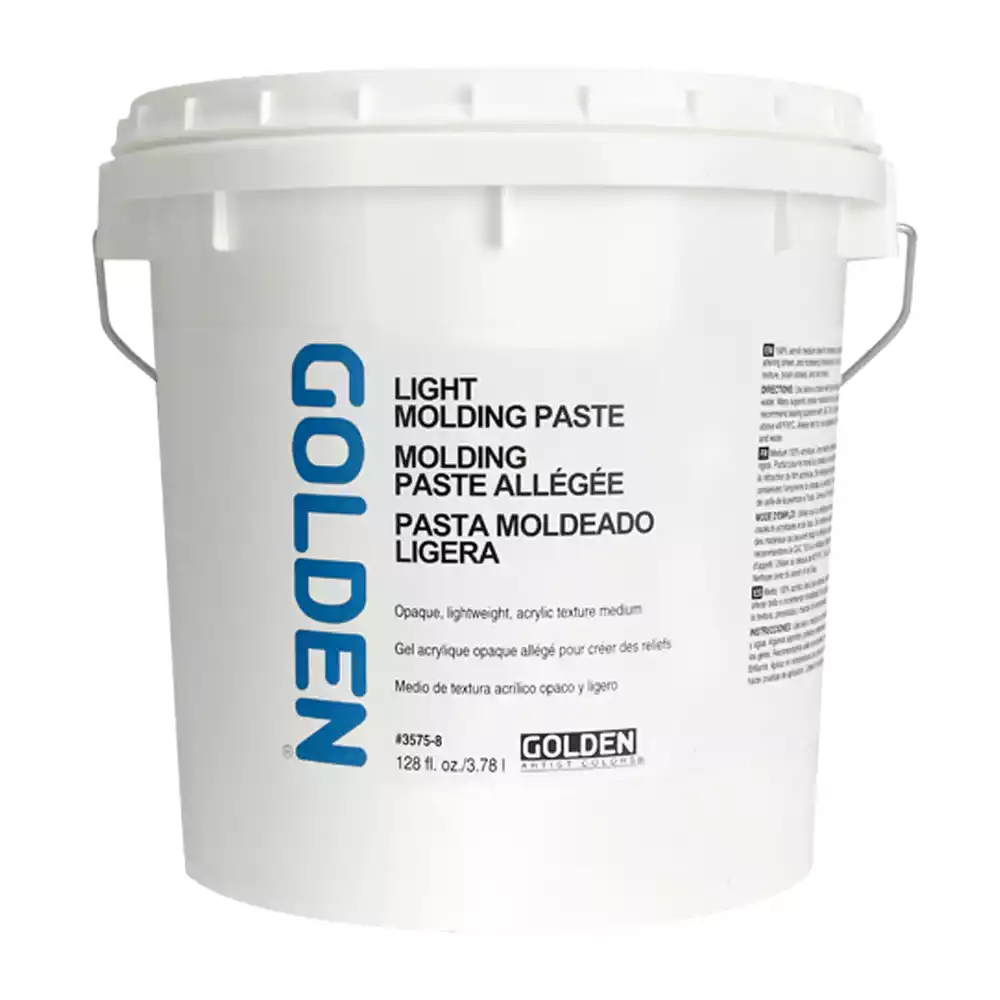 Light Molding Paste er betydeligt mindre massiv i sit indhold og derfor meget lettere at arbejde med, når acrylfarverne skal påføres lag-på-lag. Den tørre flade fremstår ugennemsigtig og mat. Den er blødere end Molding Paste og utroligt smidig. Light Molding Paste er formfast og velegnet til opbygning af reliefagtige flader